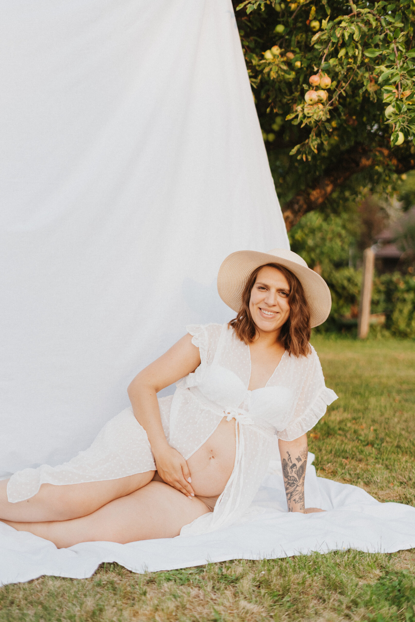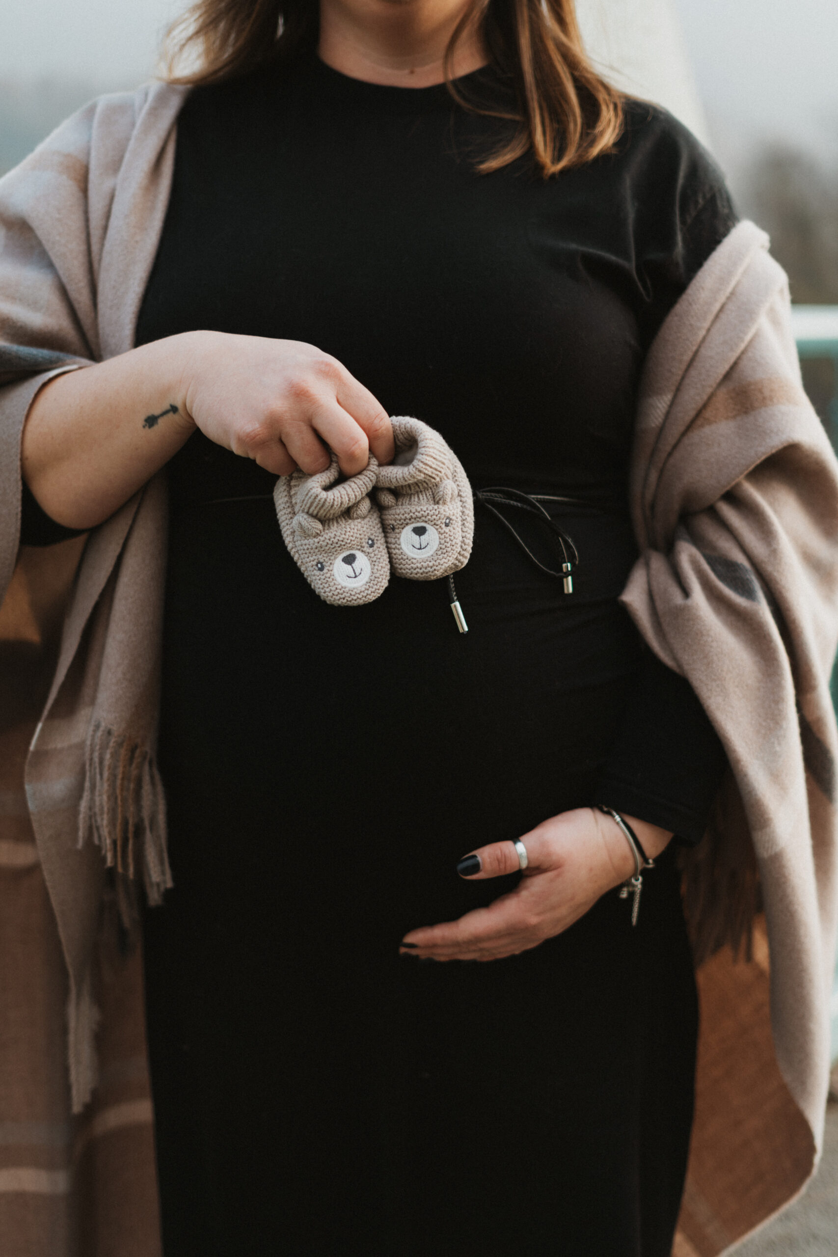 Priporočam, da izberete udobna oblačila v naravnih tonih, ki bodo poudarila vašo nosečniško postavo. Če želite, lahko prinesete tudi predmete, ki imajo za vas poseben pomen, kot so copatki, ultrazvočna slika ali odejica.